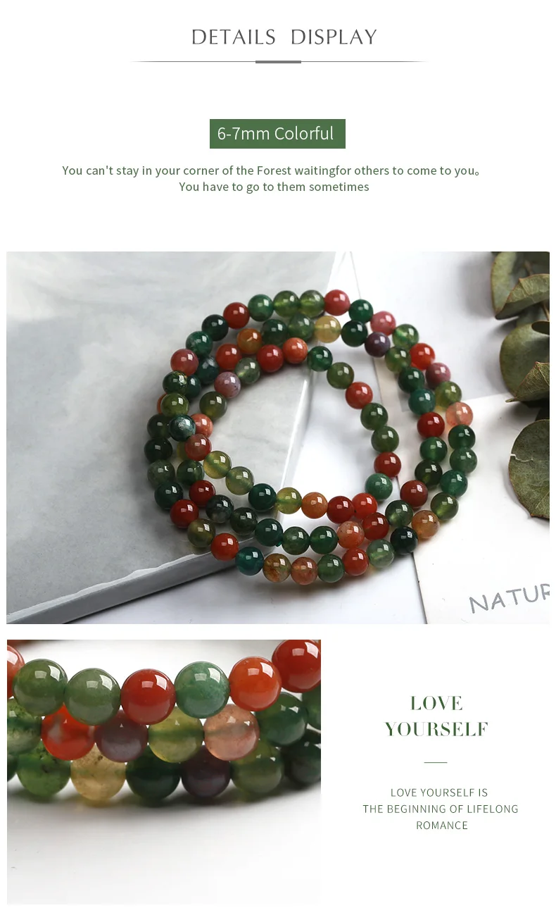 Браслет из натурального индийского агата, турмалина, 6-7 мм