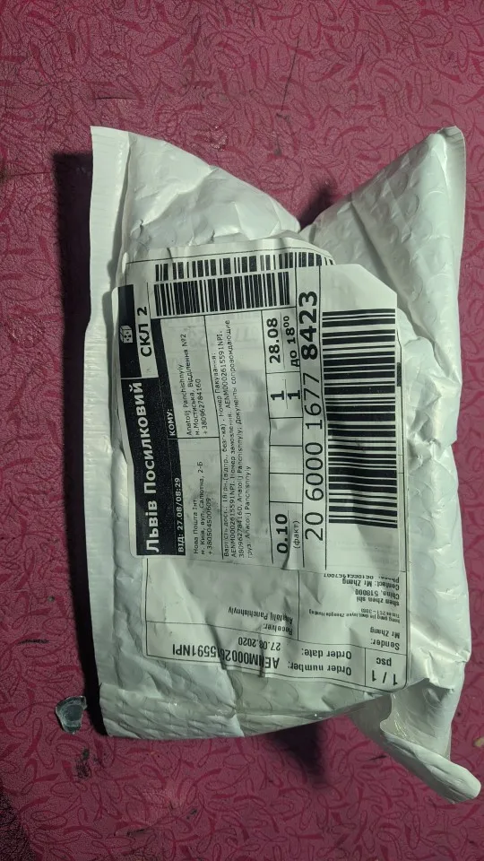 Заказ оплачен 2020-08-26, поступил в Омск 2020-09-14. Пакет пришел в групповой посылке (7 пакетов от разных продавцов). Доставлено без повреждений.