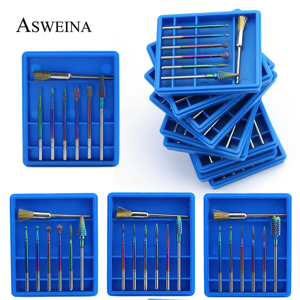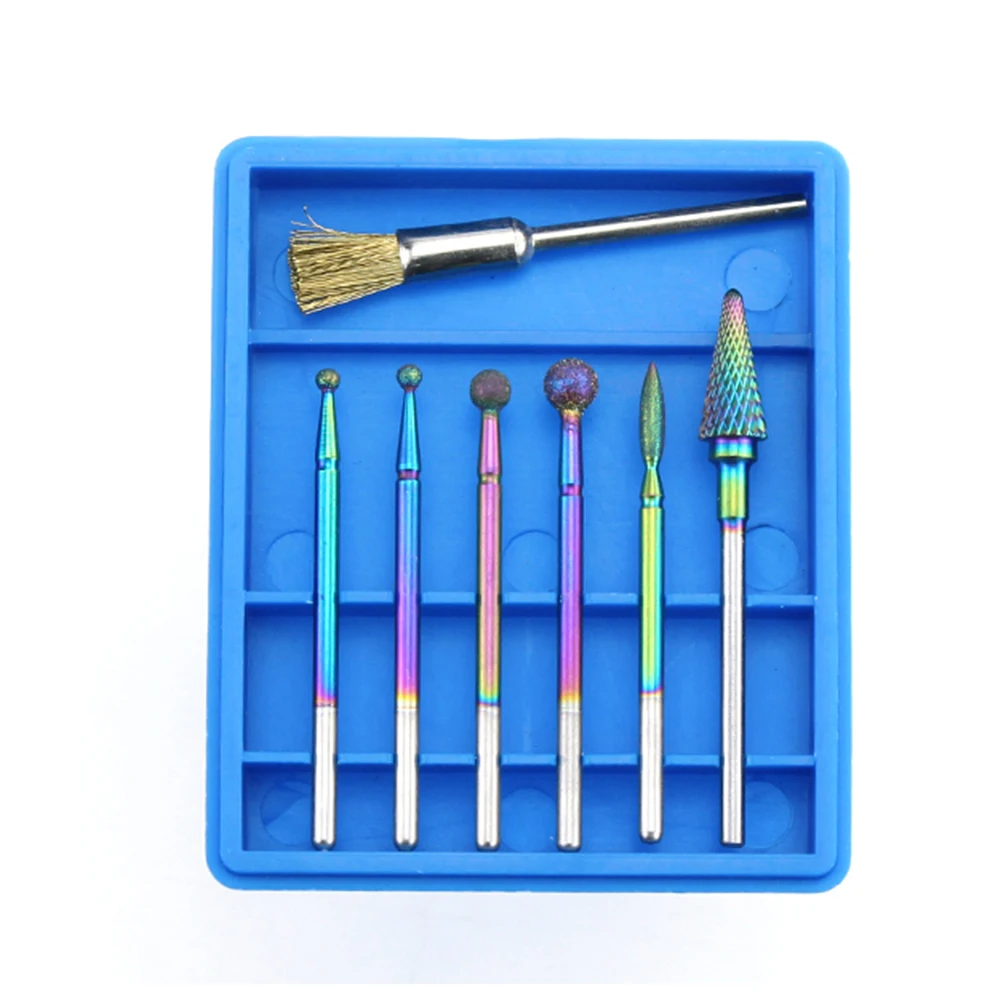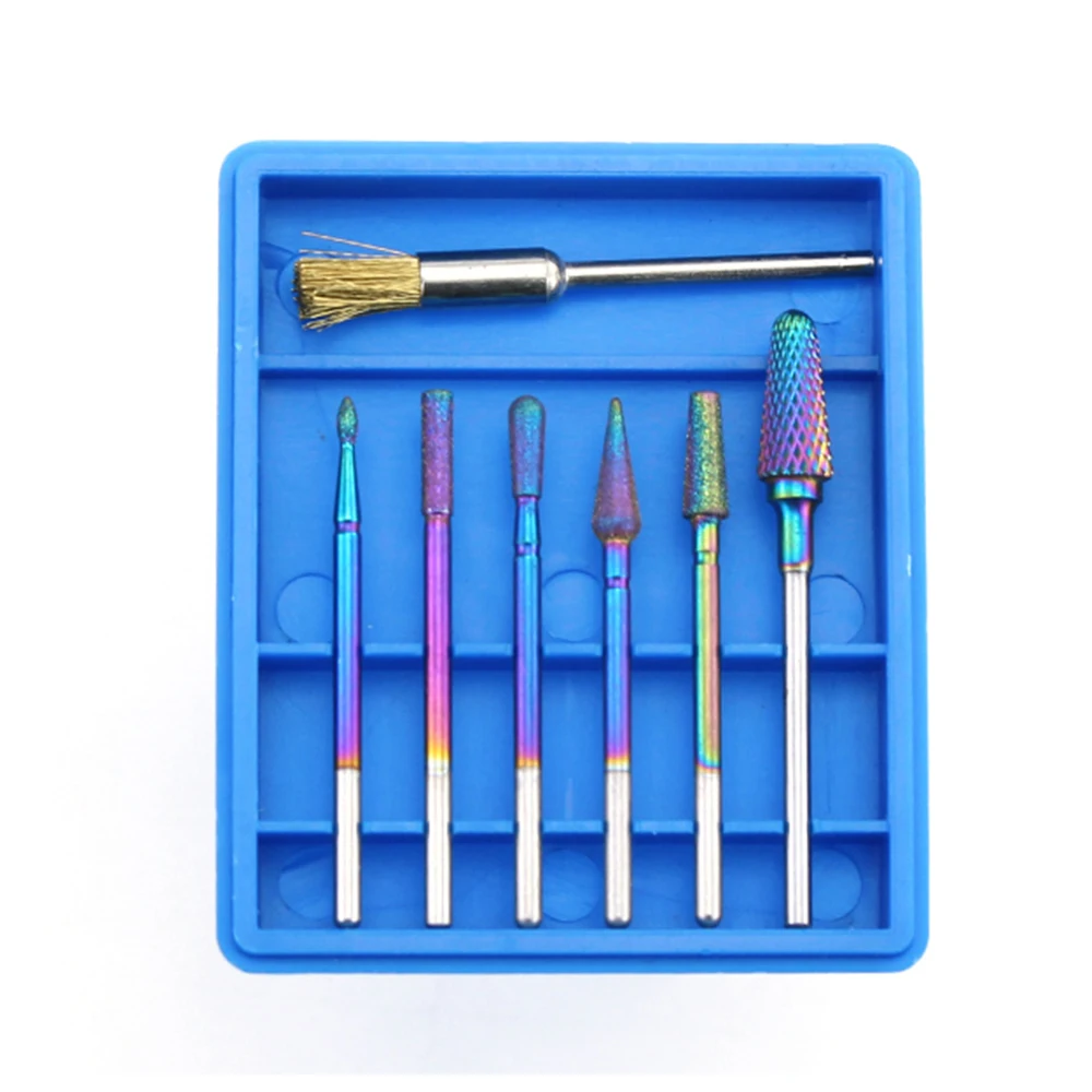 7 шт.компл. Алмазный карбидный фрезерный резец Радужная фреза для ногтей кисти для маникюра электрические сверла сверло инструменты для дизайна ногтей