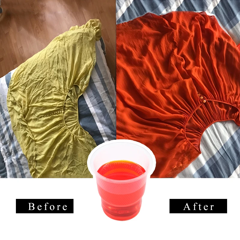 Чем больше воды, тем легче цвет. Лучше всего покрасить один предмет одежды одновременно. Рекомендуется повторять окрашивание (эффект кипячения лучше), И в tПроцесс окрашиванияКоторыеТребует многократного переворачивания одежды Применение: хлопок, пенька, джинсы, холст, модал, вискоза и т. Д. Ткань не подходит: pПолиэстер, шерсть, хлопок, спандекс, шифон, химическое волокноИ т. д Справочная дозировка: Футболка/шорты/тонкая рубашка (20-40 г) брюки/джинсы/тонкое пальто (40-80 г) платье/тонкое пальто (60-100 г) длинное пальто/плотное пальто (80-160 г) После окрашивания Стирайте одежду в первые несколько раз водой вместо моющего средства или стиральной машины (Стирка окрашенной одежды водойВ первомНесколько разЧто Одежда выцветла, это нормальное явление.)
