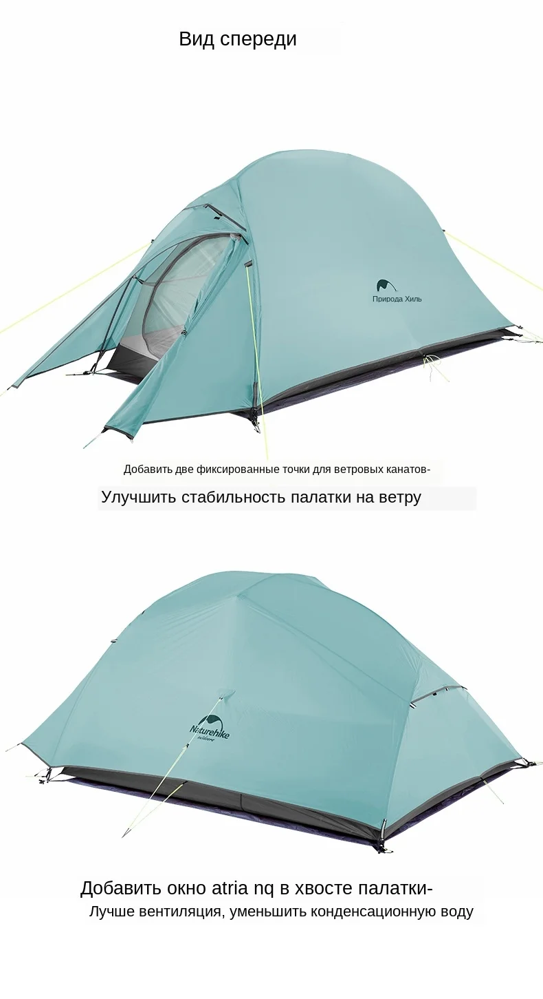 Naturehike Новый 2 человек Сверхлегкий облачный вверх 2 профессиональный палаточный лагерь 20D силиконовый ветрозащитный открытый туристический тент бесплатный коврик