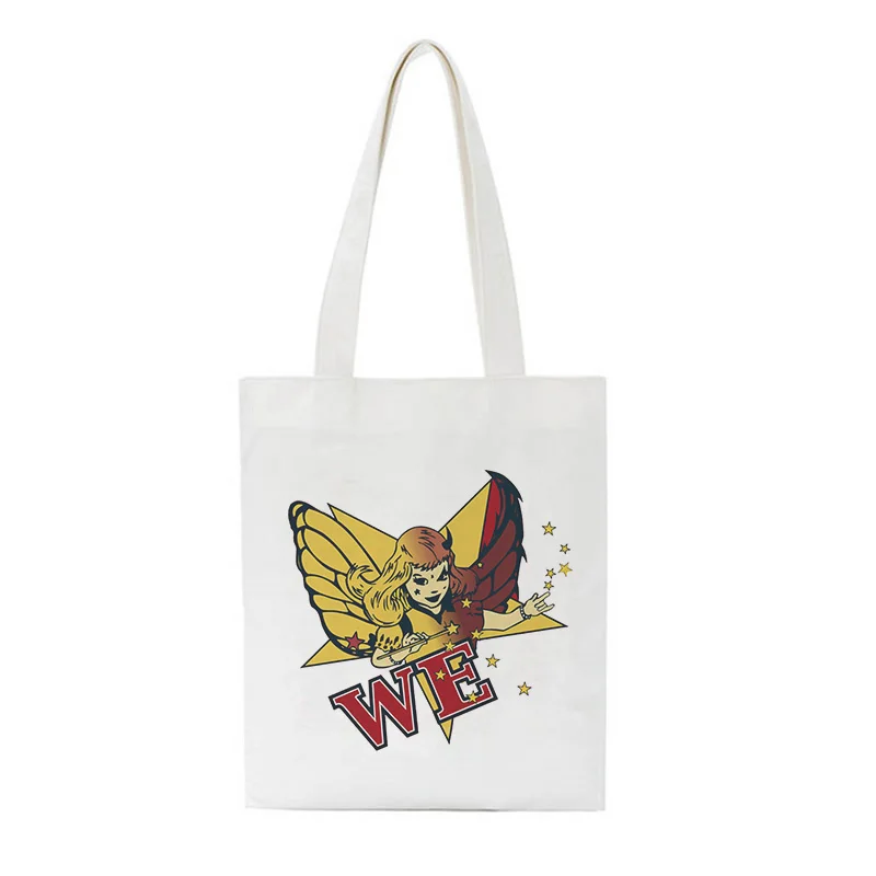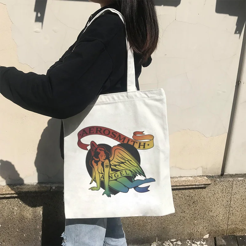 Холщовые сумки на плечо с изображением опавшей розы ангела, темная Веселая мультяшная сумка через плечо в стиле Харадзюку, Женская сумочка, кошелек в стиле ретро