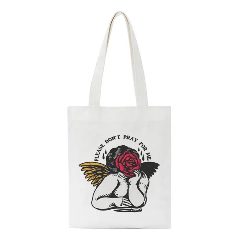 Холщовые сумки на плечо с изображением опавшей розы ангела, темная ...