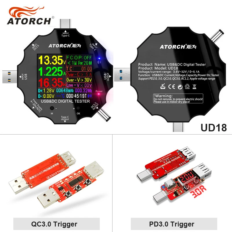 ATORCH использует схему отбора образцов профессионального инструмента, точность измерения напряжения и тока достигает 0,00001