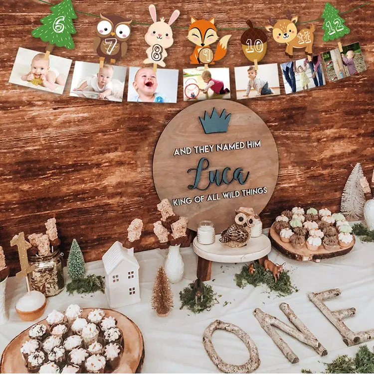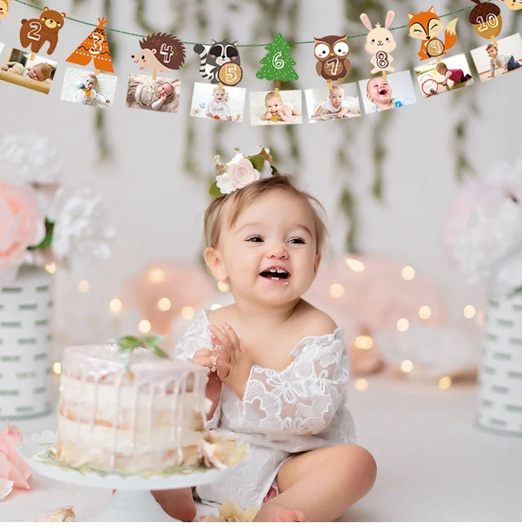Фотографический плакат в лесу с днем рождения, баннер для вечеринки в стиле сафари, украшение в виде животных из джунглей, товары для 1-го дня рождения, Babyshower