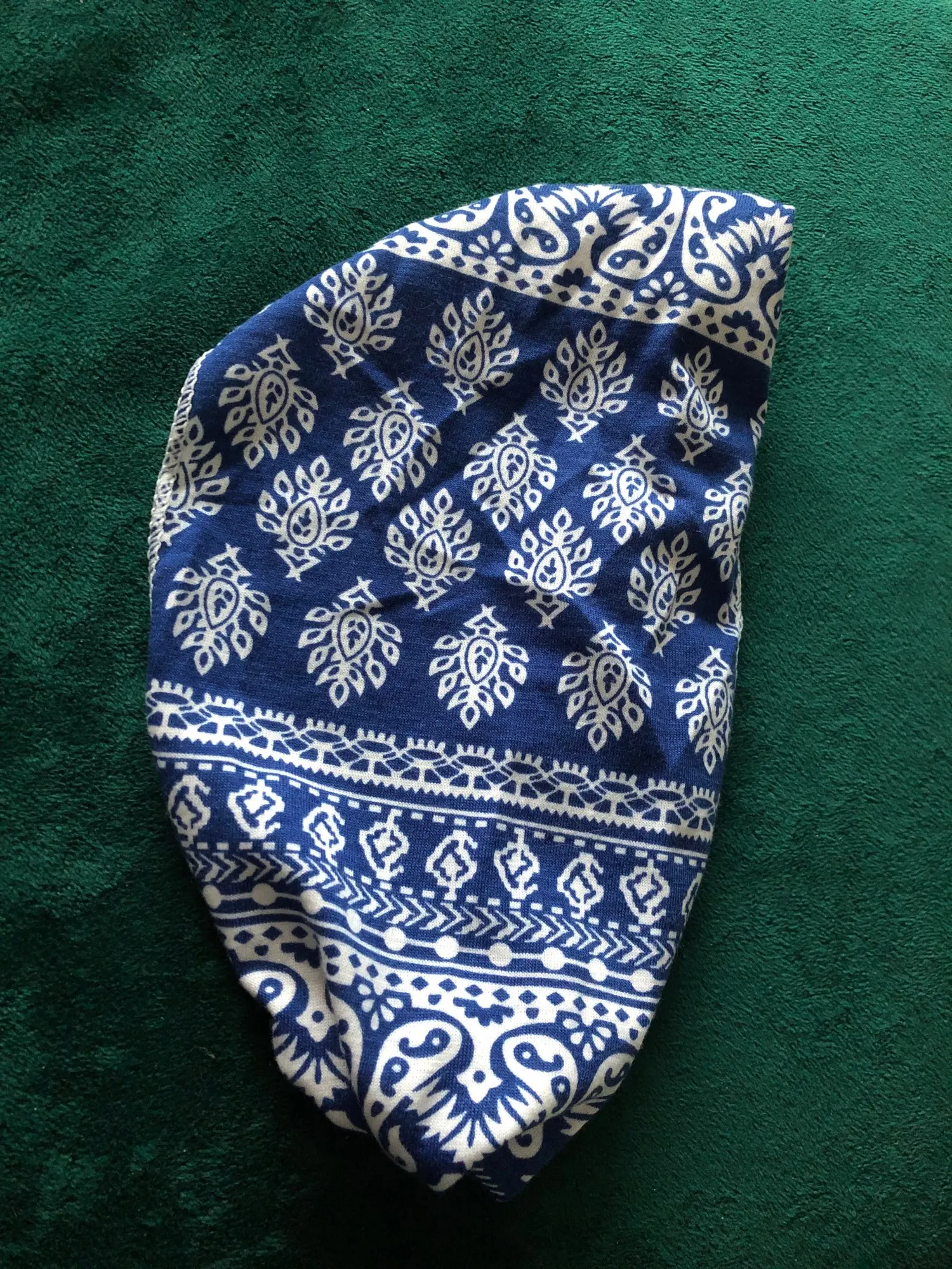 Это мой второй заказ у этого продавца - товар хорошего качества за свою цену и доставка до Беларуси - месяц. В этот раз заказала вторую косынку синего цвета и розовую - синие мне понравились больше - на них рисунок симметричен и цвет супер....следует учитывать, что косынка на маленькую голову, у меня объем -53 см
