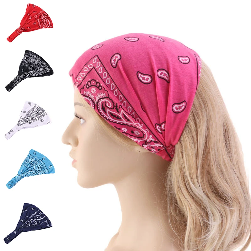 Повязка на голову женская из мягкого хлопка, в стиле бохо, широкая, эластичная, Спортивная, тюрбан с принтом