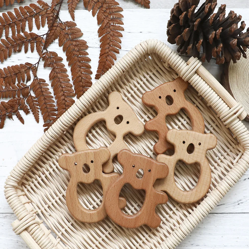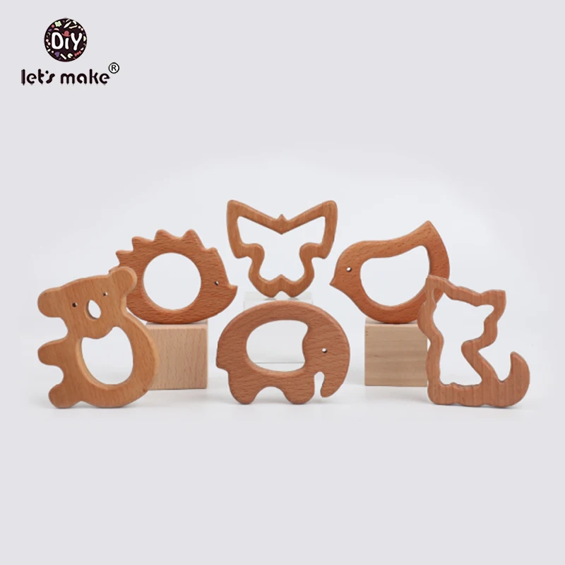 Деревянный Прорезыватель для зубов Let's Make, 10 шт., буковое оливковое масло, слон, коала, Бабочка, бегемот, ежик, птица, кошка, детские игрушки без бисфенола