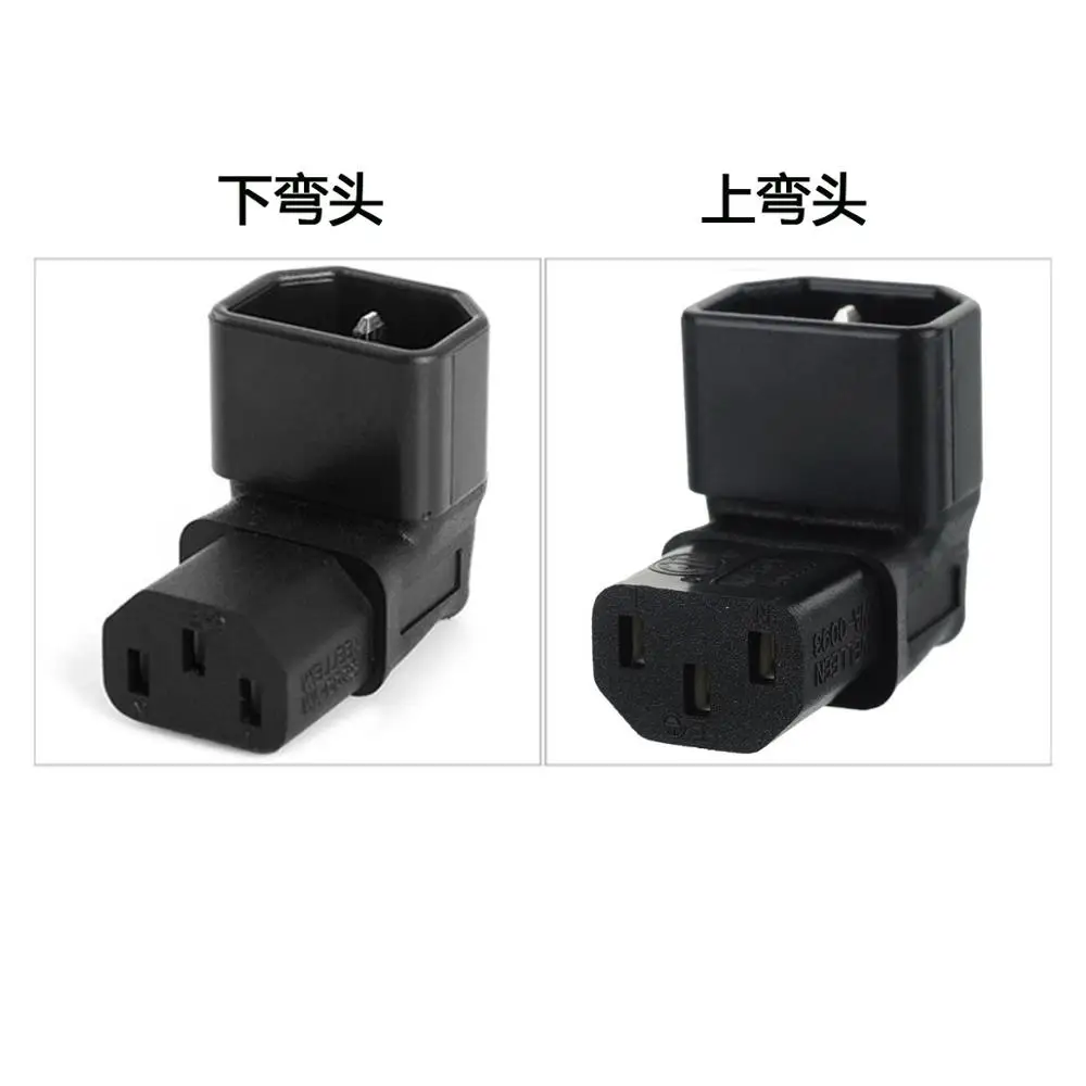 Прямоугольный адаптер переменного тока IEC 320 C14 в C13, IEC 3 полюсный штекер на гнездо 90 градусов вверх вниз угловой преобразователь переменного тока