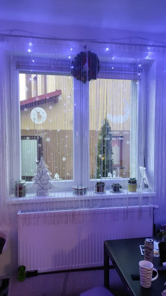 Все как в описании. имейте в виду что полотно не большое. но на нём все как на картинке 3 оленя, ёлка снежинки и т.д. если большое окно лучше покупать 2 шт.