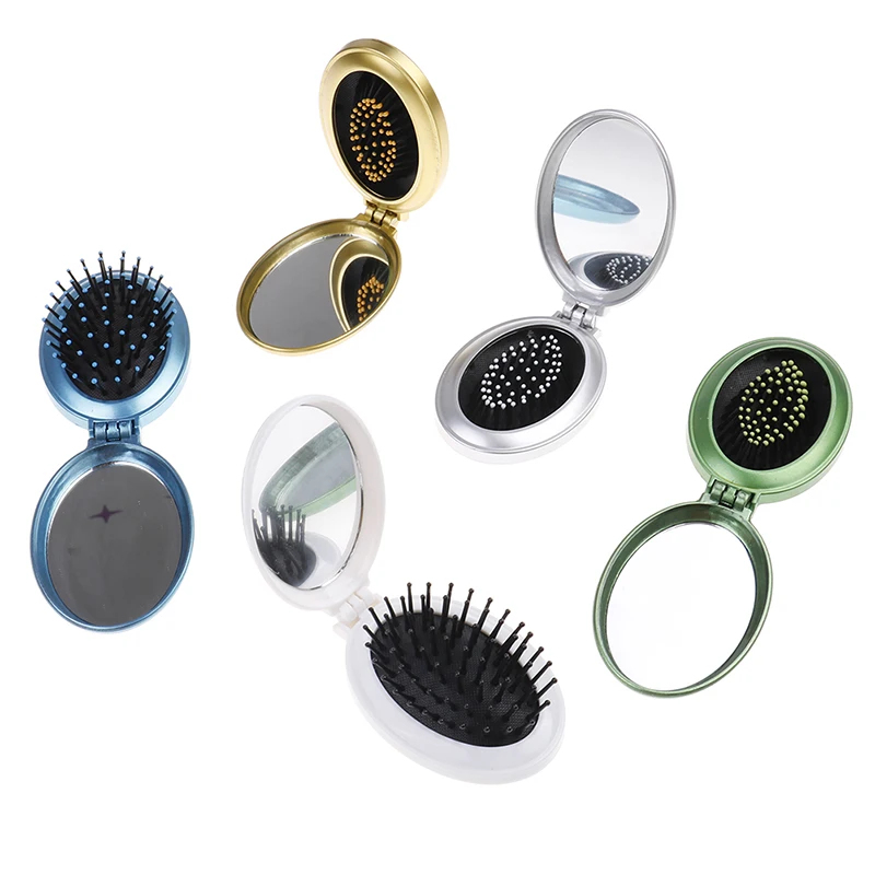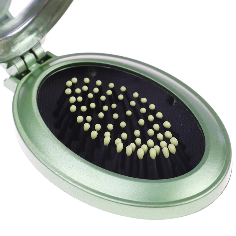 Расческа Складная женская, мини-зеркало, массажная круглая щетка для волос, удлинитель, инструменты для парикмахерских, Расческа с шампунем