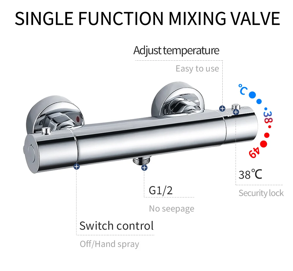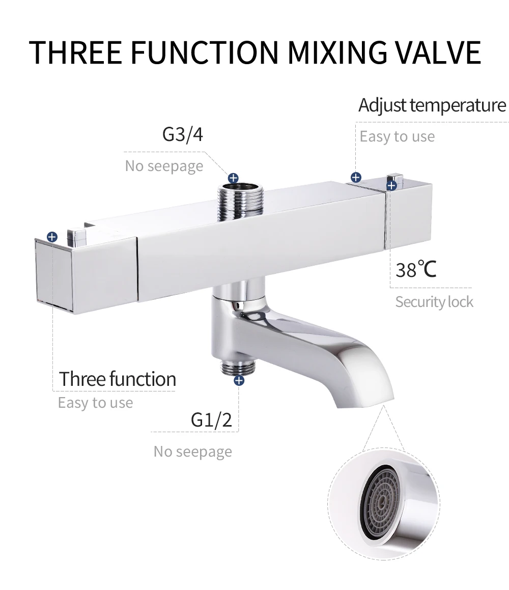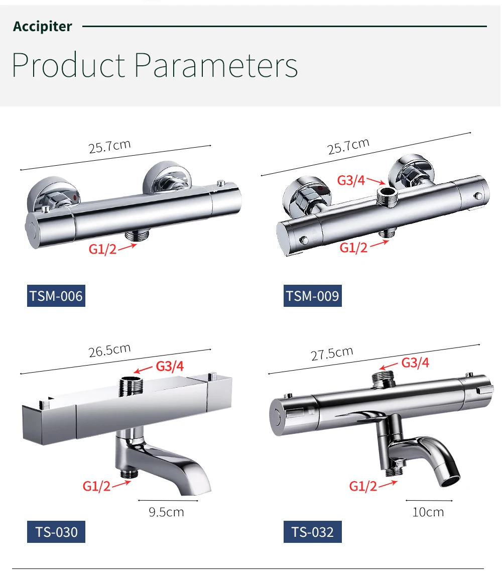 Смеситель для душалатунный, термостатный смеситель, Смеситель для ванны TSM-009