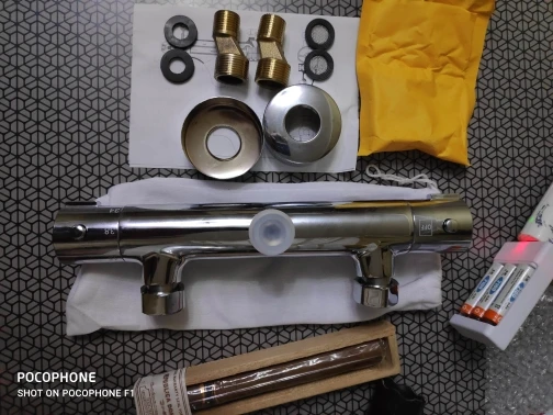 Упаковка так себе, но без повреждений, внутри упаковки видно, что разложено все специально чтобы исключить прямой контакт между металлическим частями. Пришла посылка за 5 дней. Смеситель выглядит достойно, тяжёлый, установил с небольшим гемороем связанным с тем, что пришлось менять местами подачу воды, т.к. переворачивать смеситель не хотелось, а горячая вода была у меня справа. Для предотвращения попадания окалины в механизм в установочном комплекте резинки с сеткой, на входе самого смесителя ещё более мелкая сетка, напор снижает, но при этом надеюсь это продлит срок службы. При проверке воздухом на смесителе в подаче обнаружены обратные клапаны. На верхний выход зацепил тропический душ, на нижний дивертор и обычную душевую лейку, раньше приходилось использовать 2 дивертора. После установки только положительные эмоции, плавная регулировка напора без изменения температуры. Да и шанс, что ребёнок самостоятельно вдруг включит себе кипяток многократно снижен.