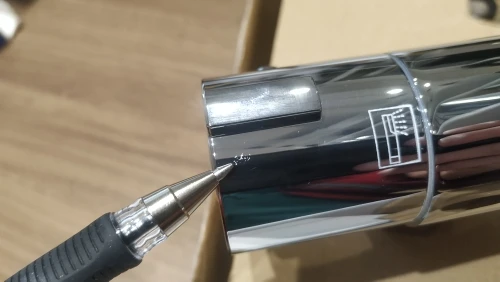 На гайке отщелкнулся хром Внизу под выходом воды на корпусе есть повреждения полученные скорее всего при доставке от эксцентриков которые лежали рядом в пакете. Коробка пришла помятая. Упаковка на 3/5
