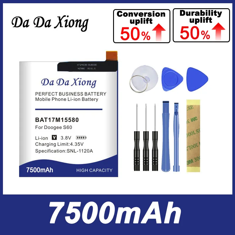 Запасные части для смартфона DOOGEE S60, 7500 мАч, 0 циклов, BAT17M15580 и BAT17S605580