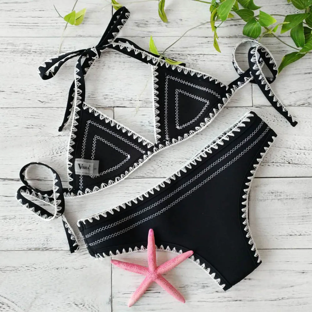 Сексуальное бикини Neopren, женский купальник кроше, пуш-ап, купальник с топом, бикини с подкладкой, бандажный бразильский комплект бикини