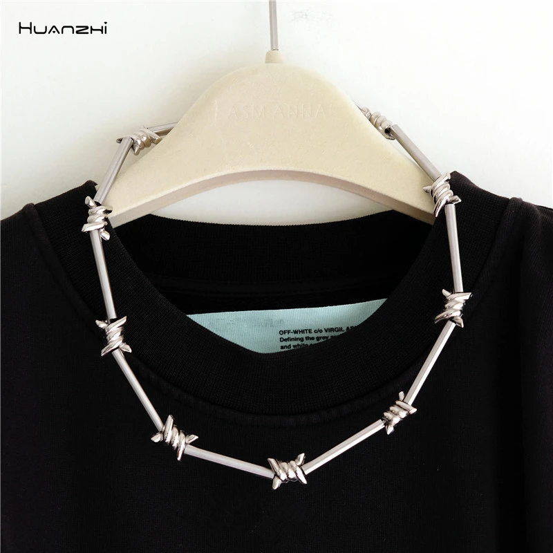 HUANZHI 2019 новый тренд Рок Хип-хоп панк бамбук фестиваль металлический галстук шипы ожерелье для женщин девушек ювелирные изделия для вечерние Ринок