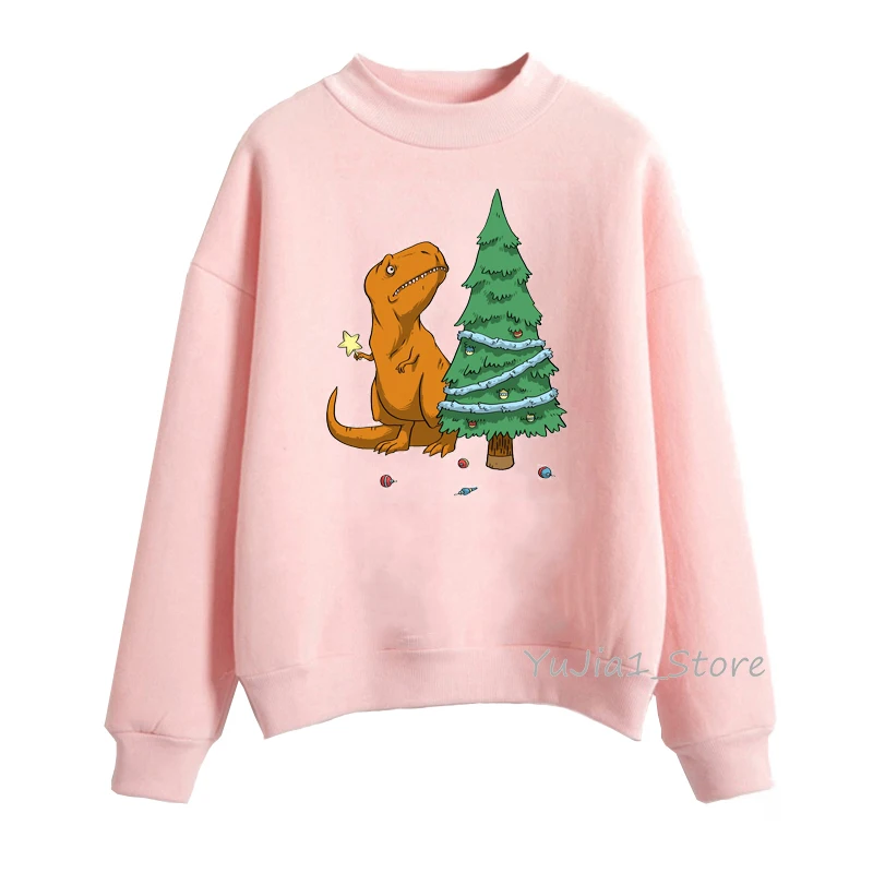 Женская толстовка с капюшоном, с принтом в виде динозавров и рождественской елки