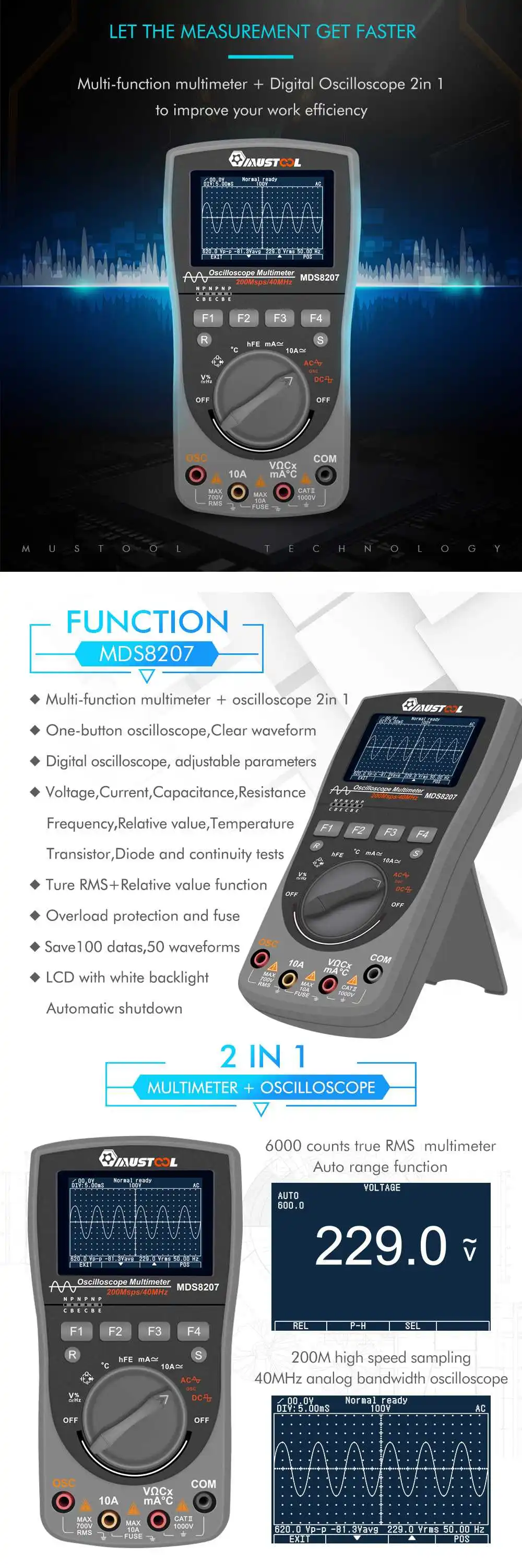 1 x Многофункциональный осциллограф MUSTOOL MDS8207