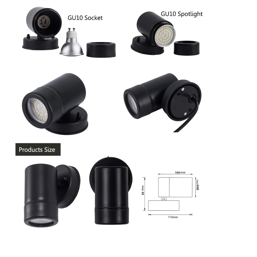 Пластиковый водонепроницаемый светодиодный настенный светильник с гнездом GU10 для улицы и помещений, Современный наружный настенный светильник IP 65, светодиодный светильник