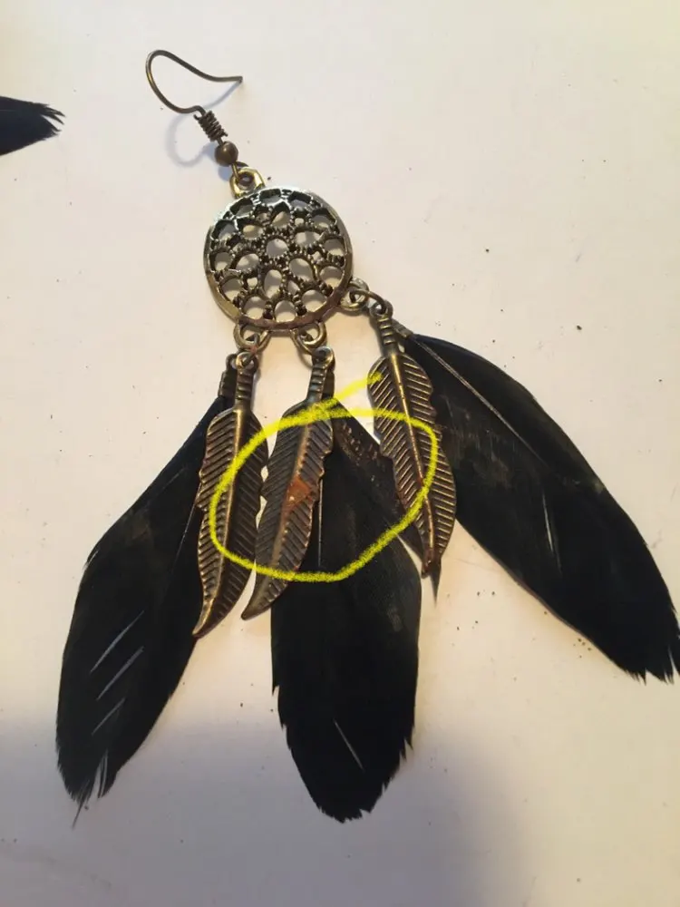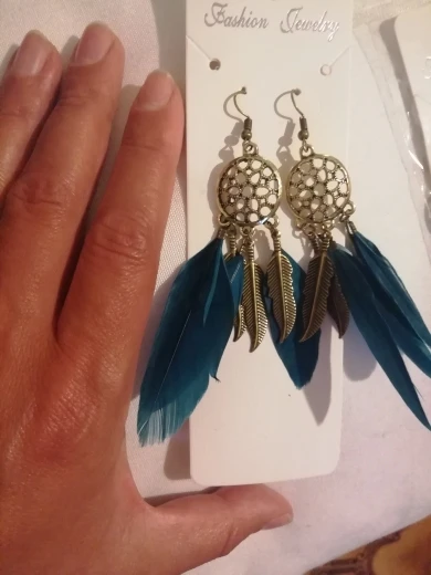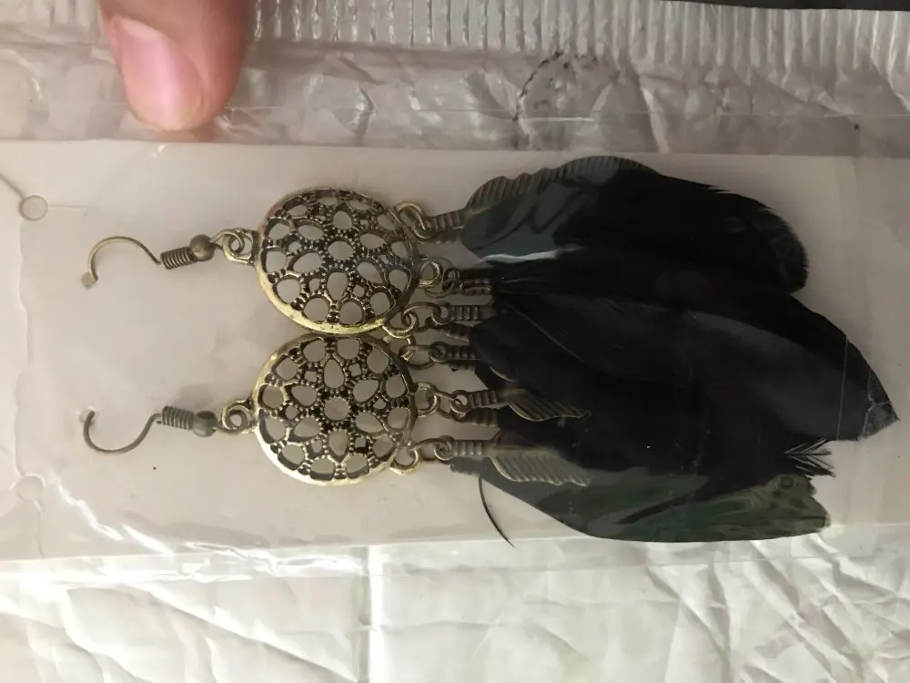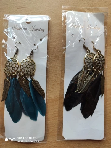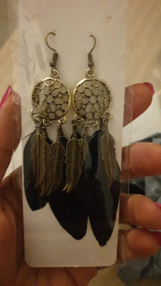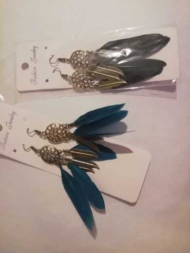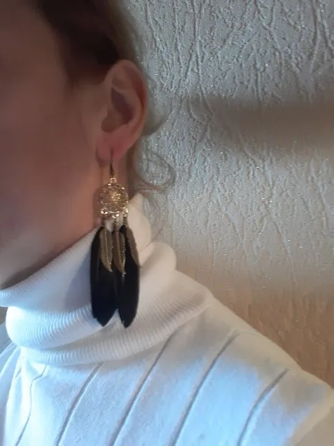 Классно выглядит и вообще топ, но блин, бракованный, на одной серёжке два пера, на другой 3. Возвращать не буду, потому что долго ждать... а так, незаметен брак, но всё же