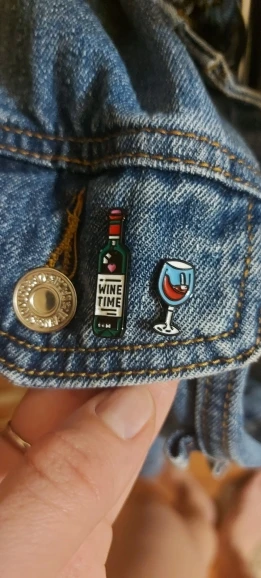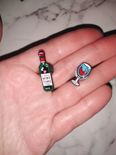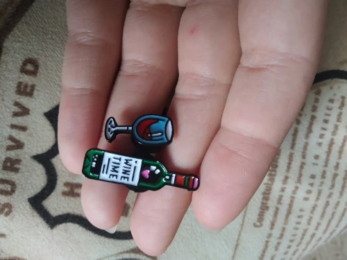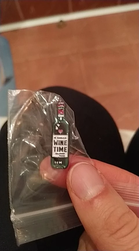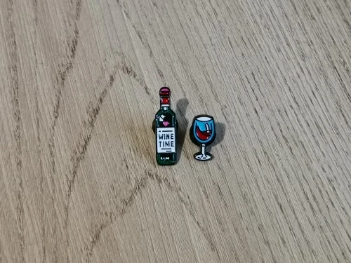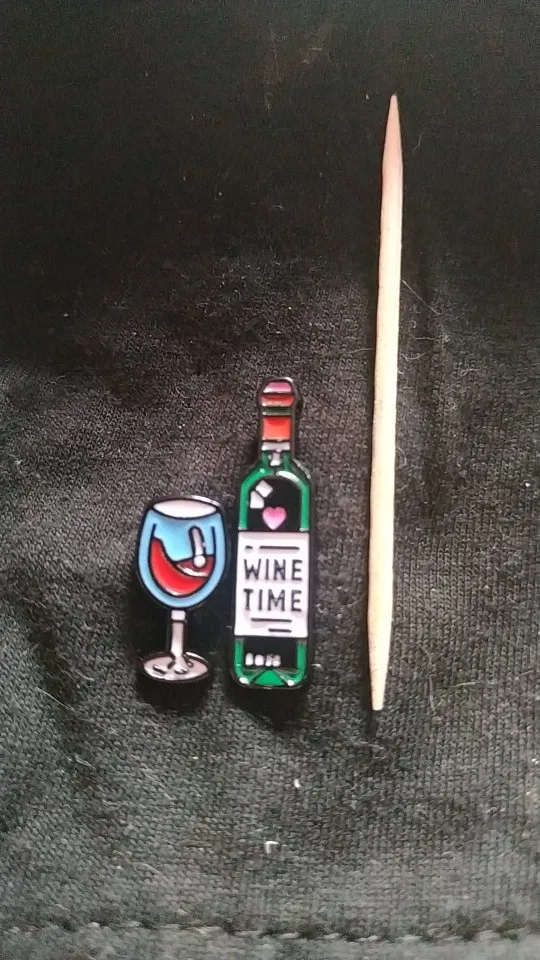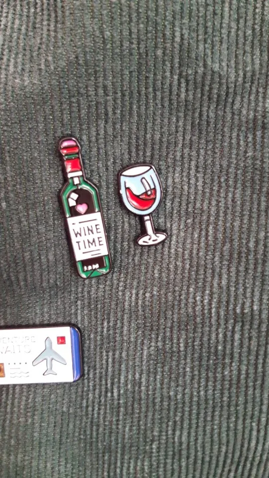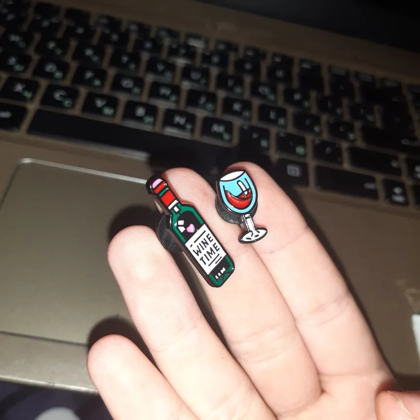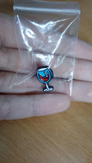 Классные металлические значки с плотной резиновой застёжкой, но с супер-ДООООЛГОЙ доставкой!!! Шли до России 2,5 месяца и я даже успела забыть про них. Положили прямо в почтовой ящик, цена на момент покупки составила 63 руб. По размеру, бутыль 3 см, бокал 1,8 см.