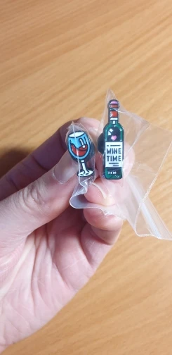 Заказала 2 полных набора - два пары значков (бутылка и бокал). Одна пара прекрасна, а от второй пришел только значок-бутылка. Значка-бокала не было. Не знаю что это - ошибка или попытка обмануть покупателя, который заказывает сразу несколько товаров... Но я, наученная горьким опытом, снимаю все распаковки на видео. Так что я без труда выиграла спор на частичный возврат денег - буду заказывать отдельно значок-бокал.