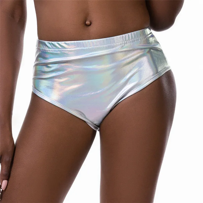 Комплект из двух предметов с голографическим рисунком, укороченный Топ без бретелек с открытой спиной, трусики с эластичным поясом, летняя Клубная одежда для ночной вечеринки, Женский комплект из 2 предметов