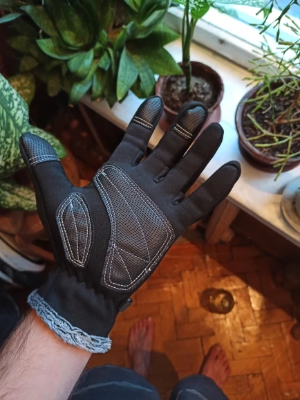 внешне очень красивые, сенсор работает. Не зимние - прошёлся в ветреную влажную погоду, около 3 градусов - холодят, ветер их остужает ощутимо. Сжимают пальцы, типа как аппарат, который давление на руке измеряет, похожий эффект. Взял L, можно было взять XL. Товаром доволен