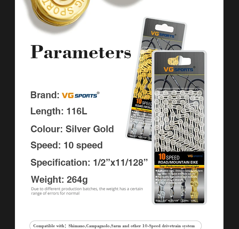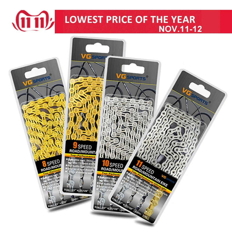 Спортивная велосипедная цепь VG, 8, 9, 10, 11 скоростей, ультралегк...