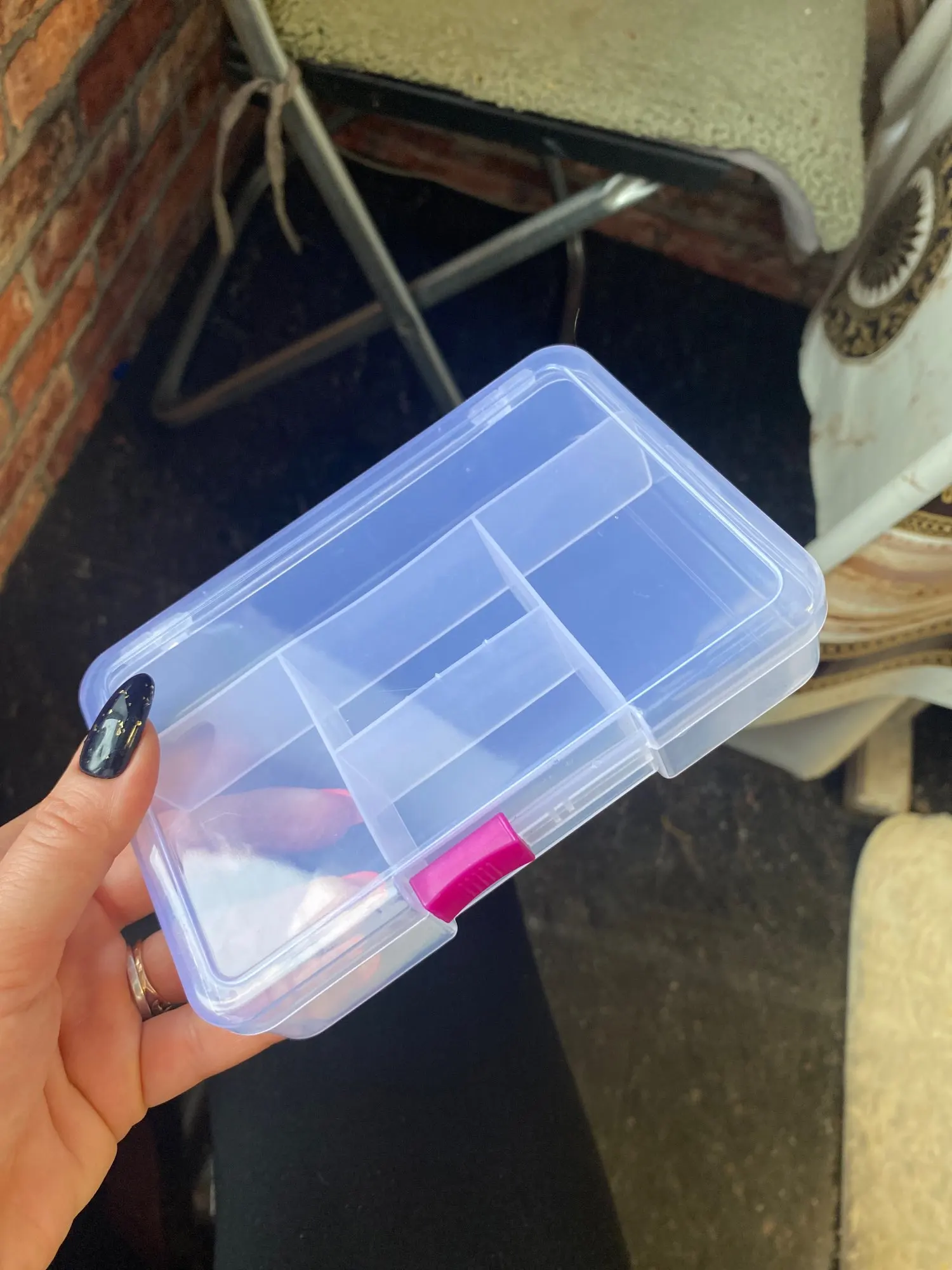 Доставка очень быстрая. Все целое приехало. Заказывал через СДЭК. Коробочки отличные. Пластик мягкий не ломкий. Надо немного будет подрезать застежку или направляющие - туго закрывается. Остальное хорошо. Для мелочей самое то!