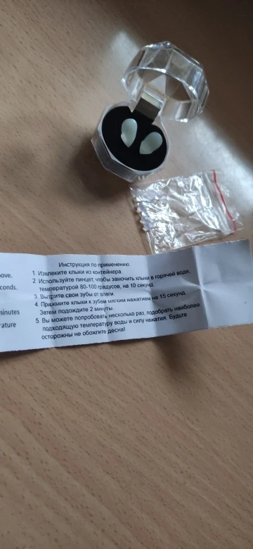 Клыки пришли в Москву за пару недель. Немного усаживаются с кипятком, как написано в инструкции, но закреплять всё равно придётся на клей для протезов, наверное.