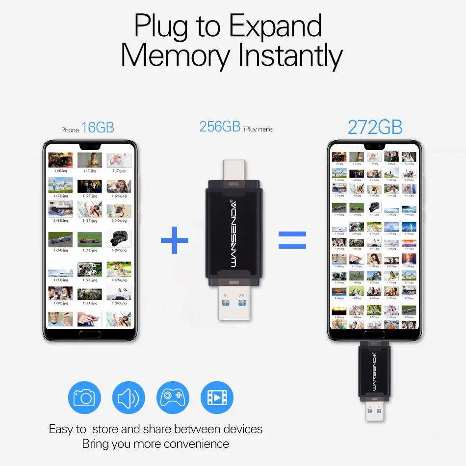WANSENDA флеш-накопитель, OTG, 512 ГБ, 256 ГБ, 128 ГБ, 64 ГБ, 32 ГБ