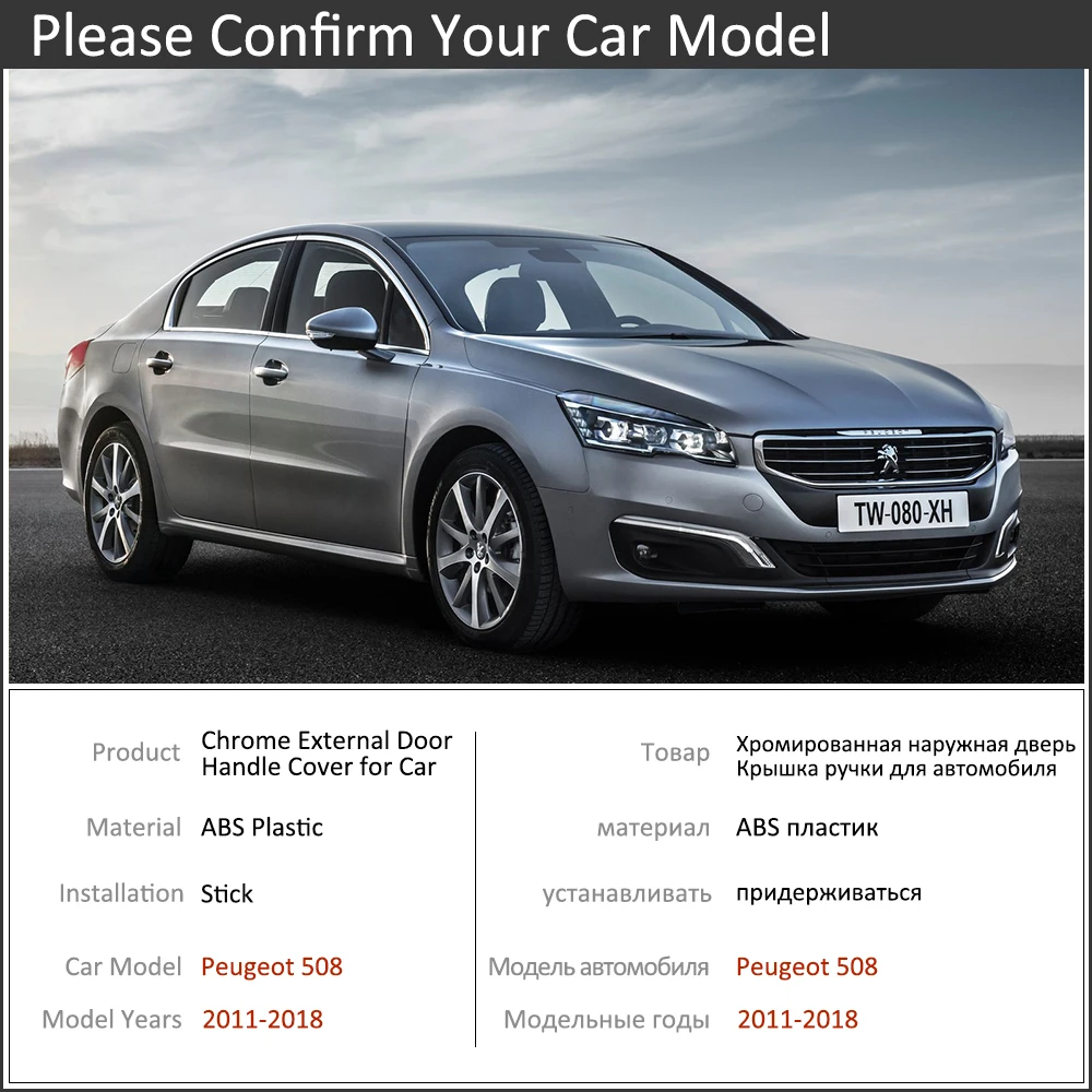 Chrome Car Door Handle Cover for Peugeot 508 2011~2018