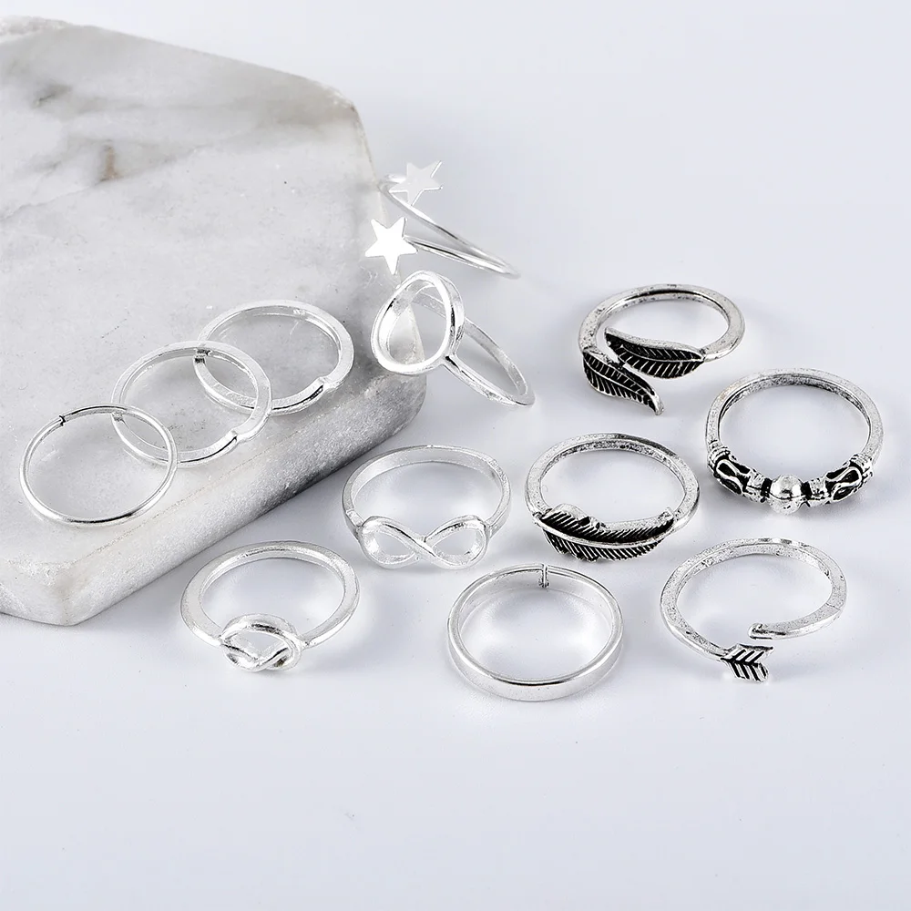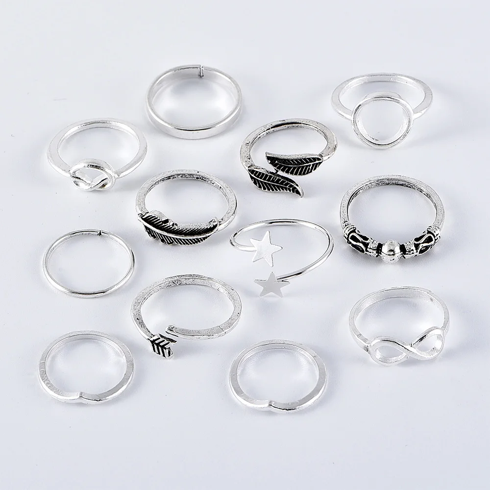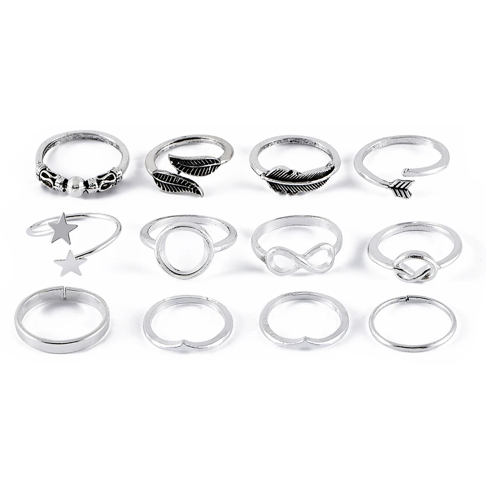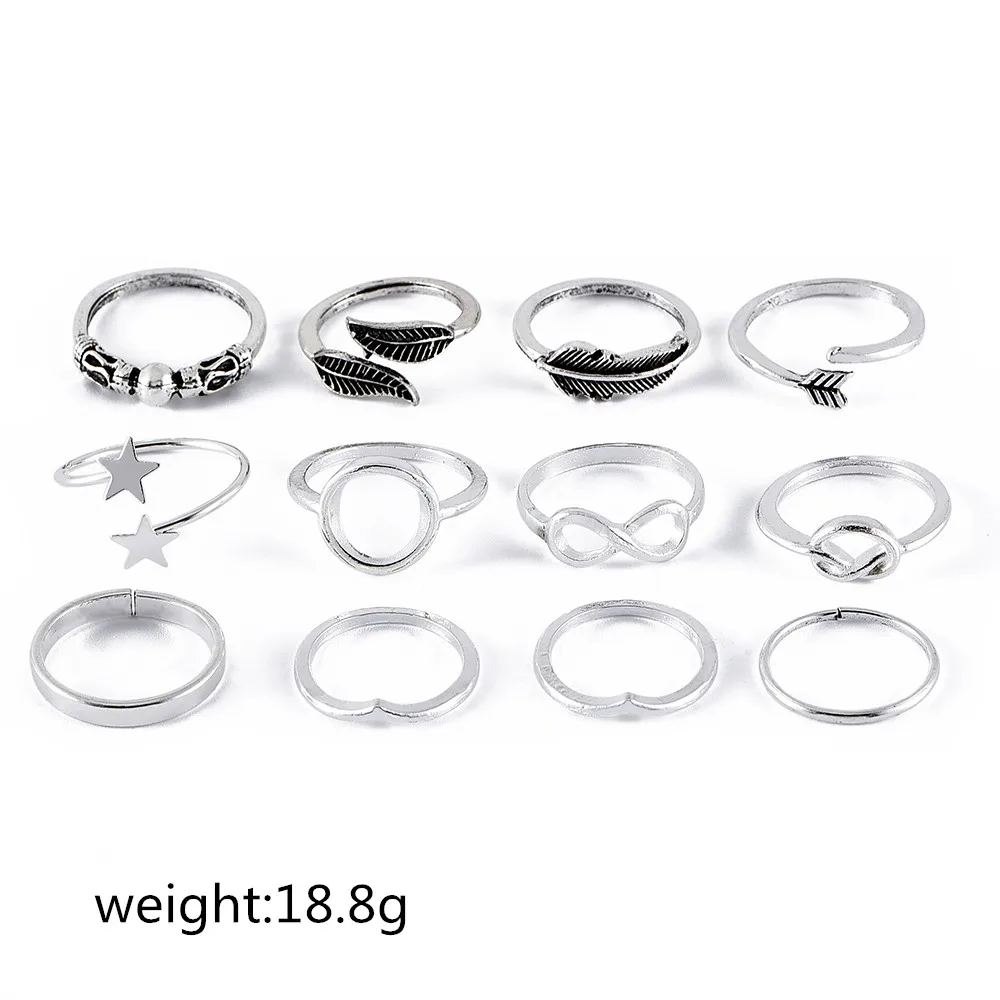 Модные геометрические кольца ALYXUY 12 шт.компл. в форме листа узла стрелы звезды 8 слов набор винтажных колец на костяшки женские свадебные подарки ювелирные изделия