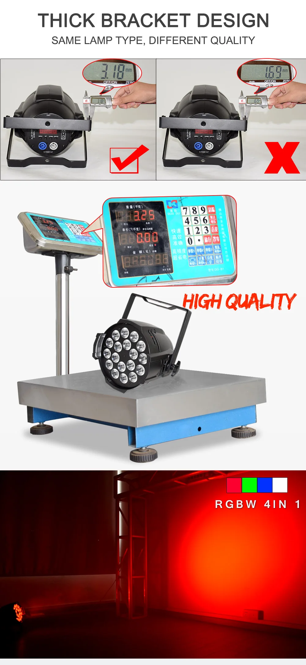 -Ультра яркий тонкий светильник с 18x 12 Вт QUAD светодиодов (4 в 1 RGBW-красный, зеленый, синий и белый)
