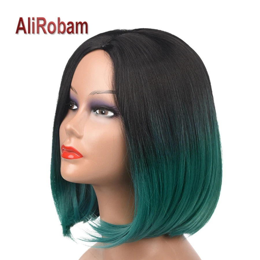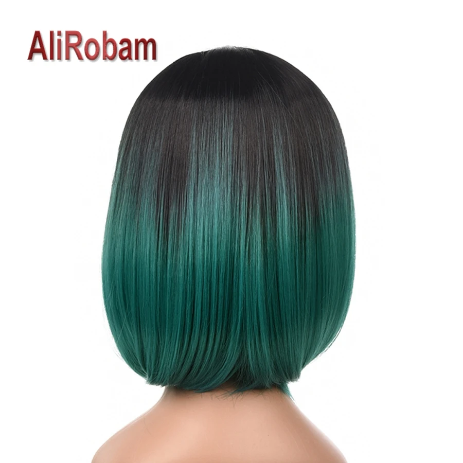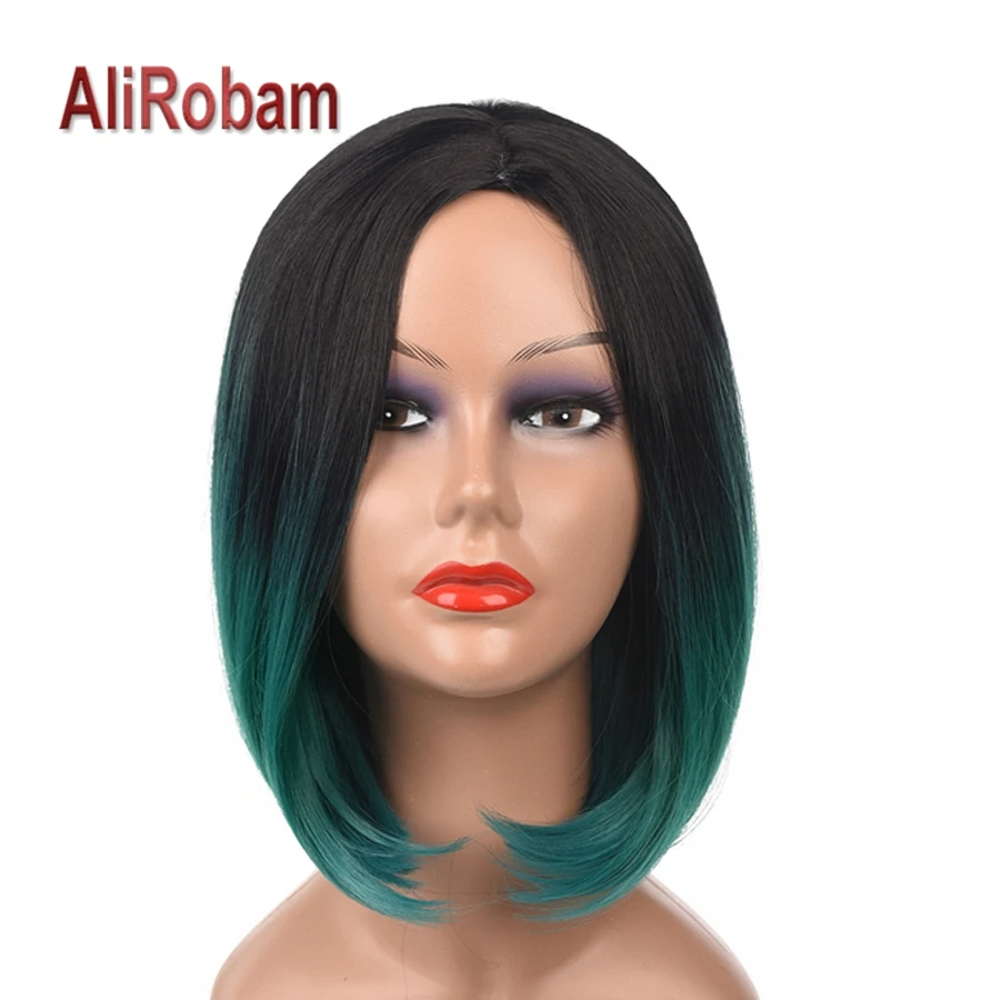 AliRobam шелковистые прямые короткие парики, искусственный парик с эффектом омбре, женские термостойкие волосы, черный коричневый зеленый синий бордовый