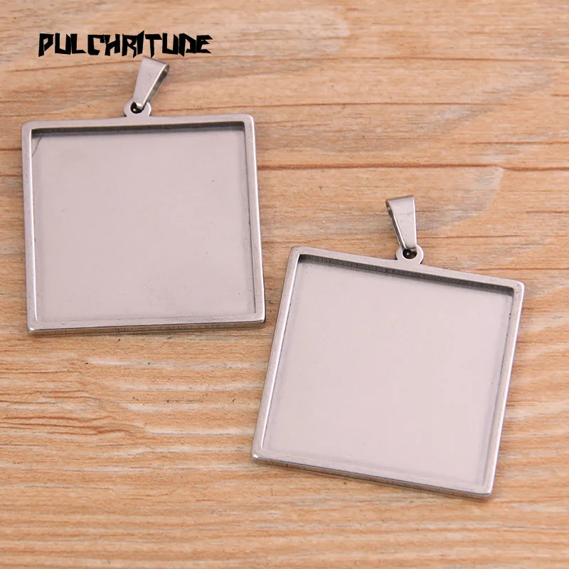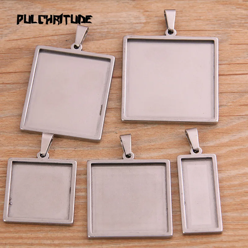 2 шт./лот, серебряный квадратный Кабошон из нержавеющей стали 5 видов стилей пробы