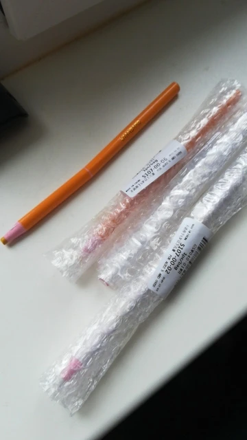 До СПб посылка шла 12 дней. Упаковано всё качественно, каждый карандаш обернут в пупырку. Заказывала красный для светлых тканей и белый для темных. Карандаш смывается водой, просто потерев на темной ткани остаются следы.