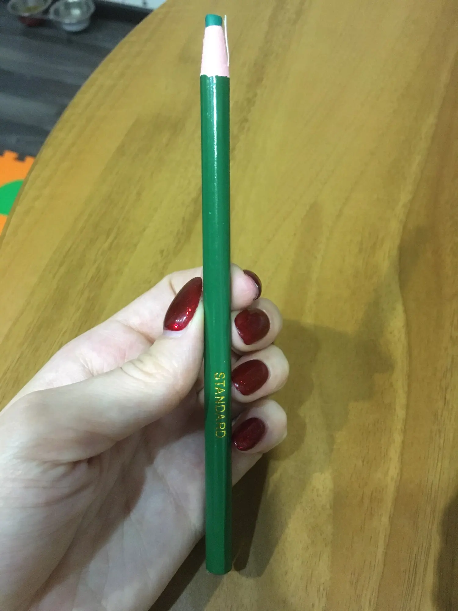 Твёрдый, немного туго чертит. Можно заточить сам мелок. Очень интересный корпус "карандаша" - из бумаги. Нужно потянуть за ниточку и потом размотать бумажку, чтобы сам стержень мелка обнажился дальше.