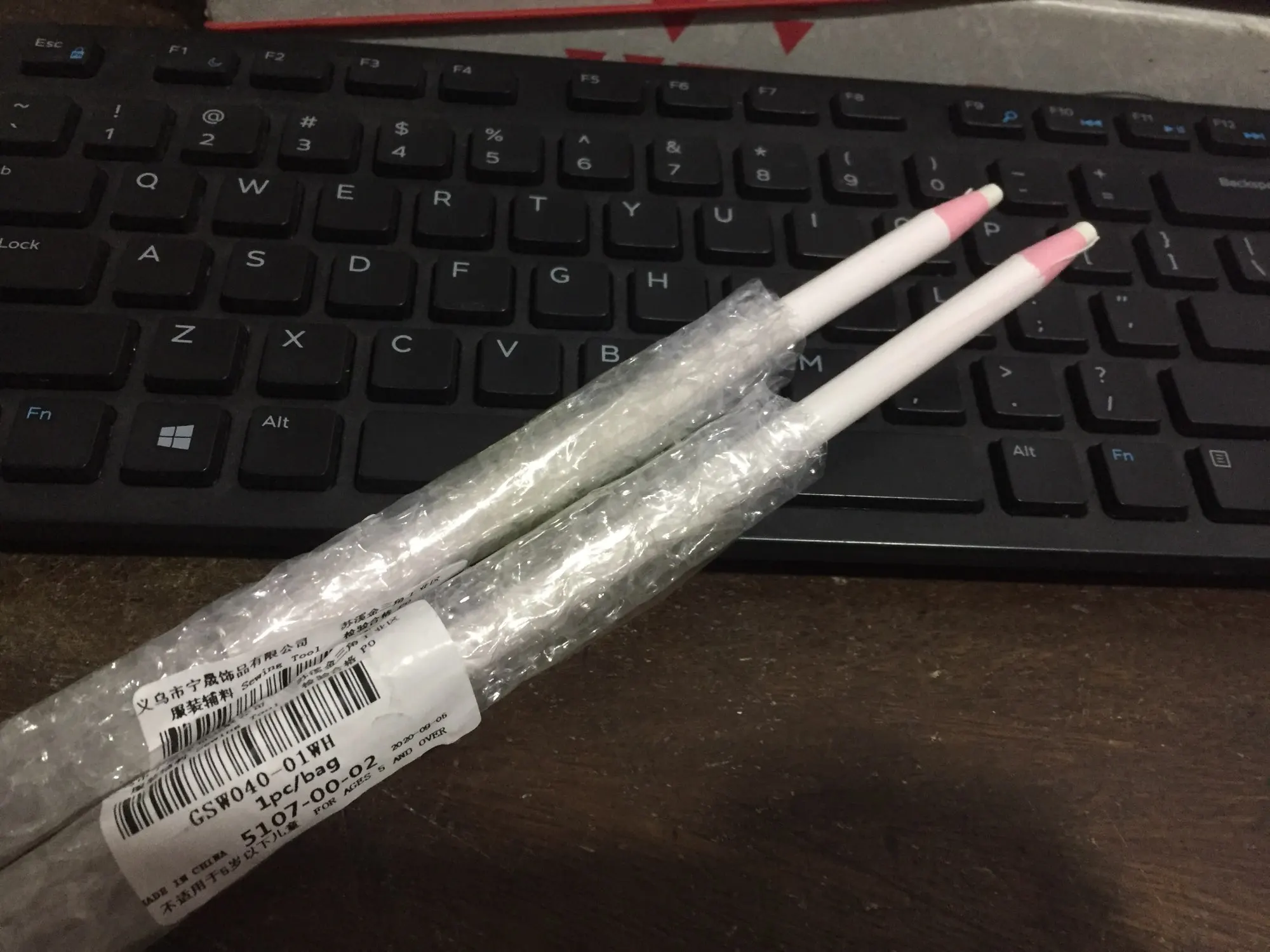 Попробовала рисовать на ткани. Все видно. Мне понравилось. Пришли упакован каждый в плёнке пупырке. Ничего не сломано. Я довольна. Взяла для светлых тканей красный, а для цветных и тёмных белый. Точно удобнее мела, который ещё некоторый не отстирать.
