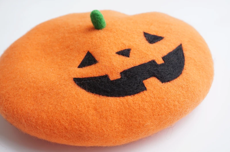 Оригинальный дизайн Хэллоуин Тыква шапка детская смешная осенне-зимняя шерстяная фетровая шапка ручной работы шапка художника для родителей и детей