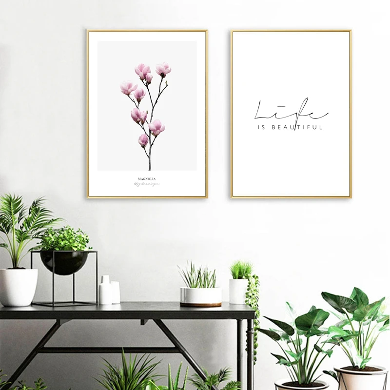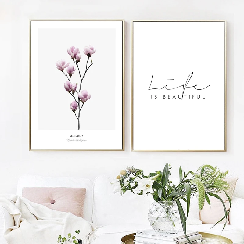 Цветочный принт магнолии, минималистичные Цветочные ботанические модные плакаты и принты, цитаты жизни, настенная Картина на холсте, картины, домашний декор