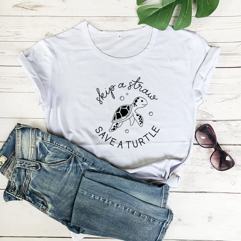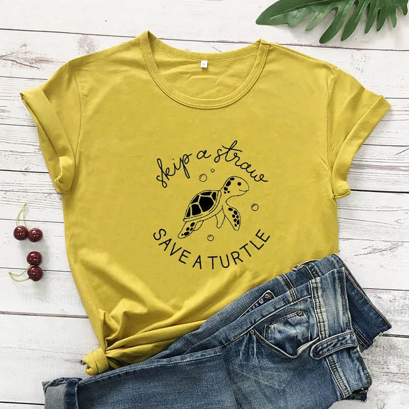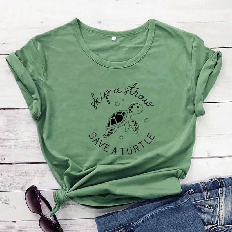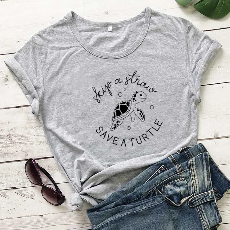 Футболка с забавным графическим принтом Skip a Straw Save a Turtle, футболки экологических активистов, подарки для любителей черепахи, 100% хлопок