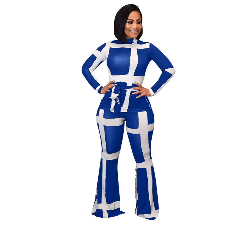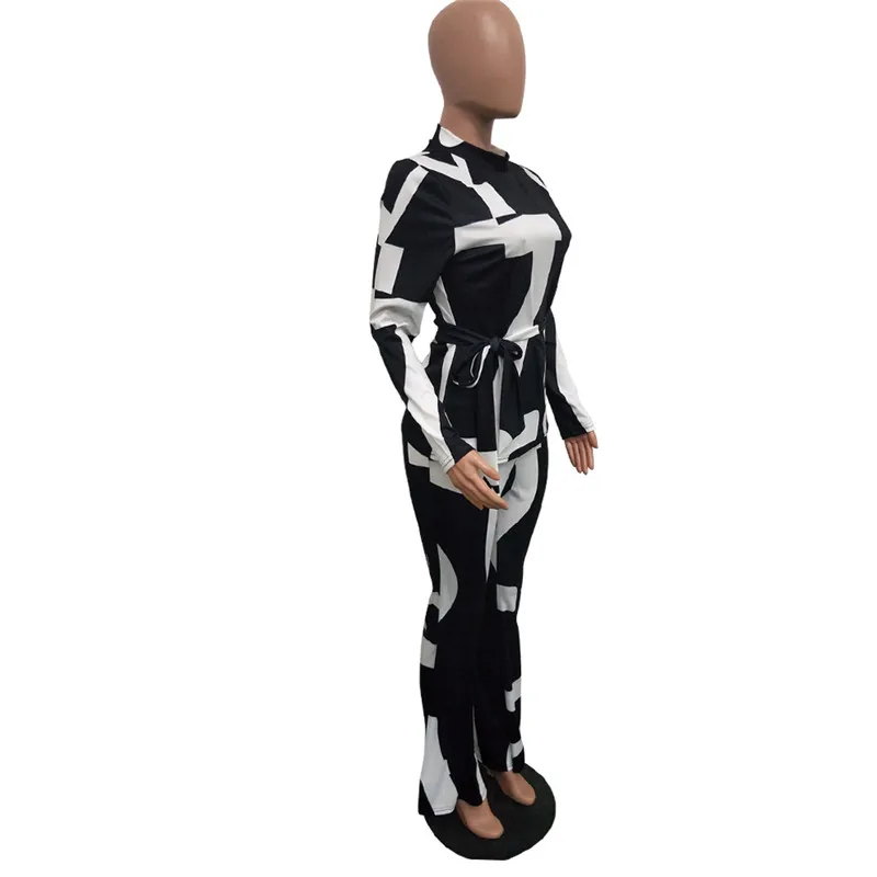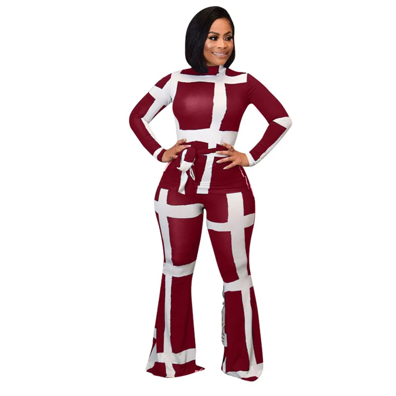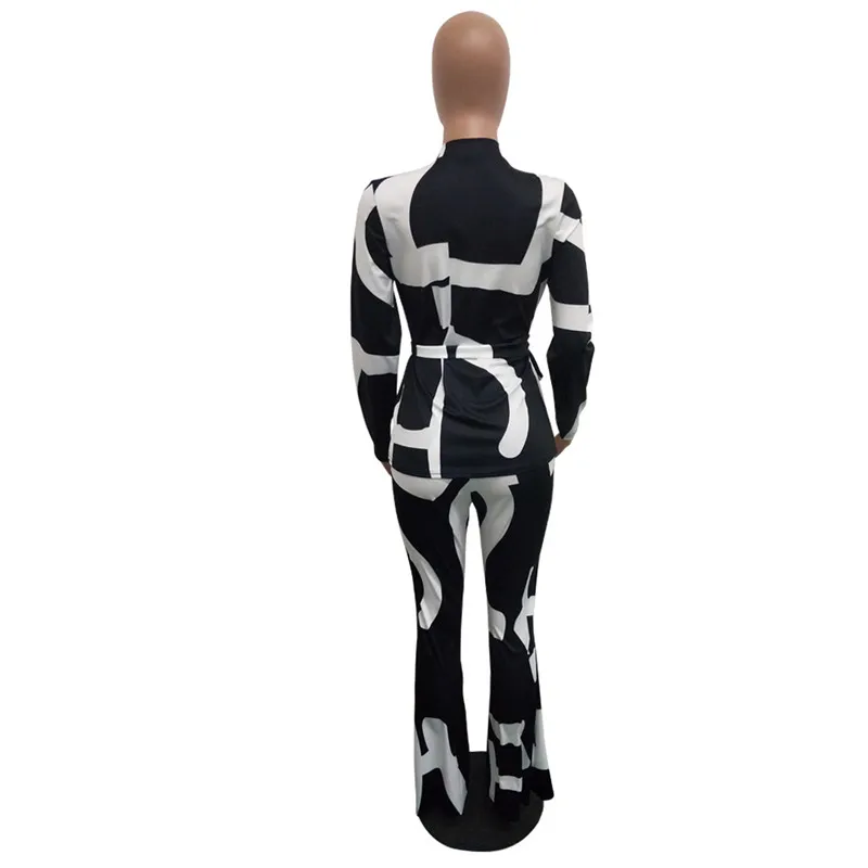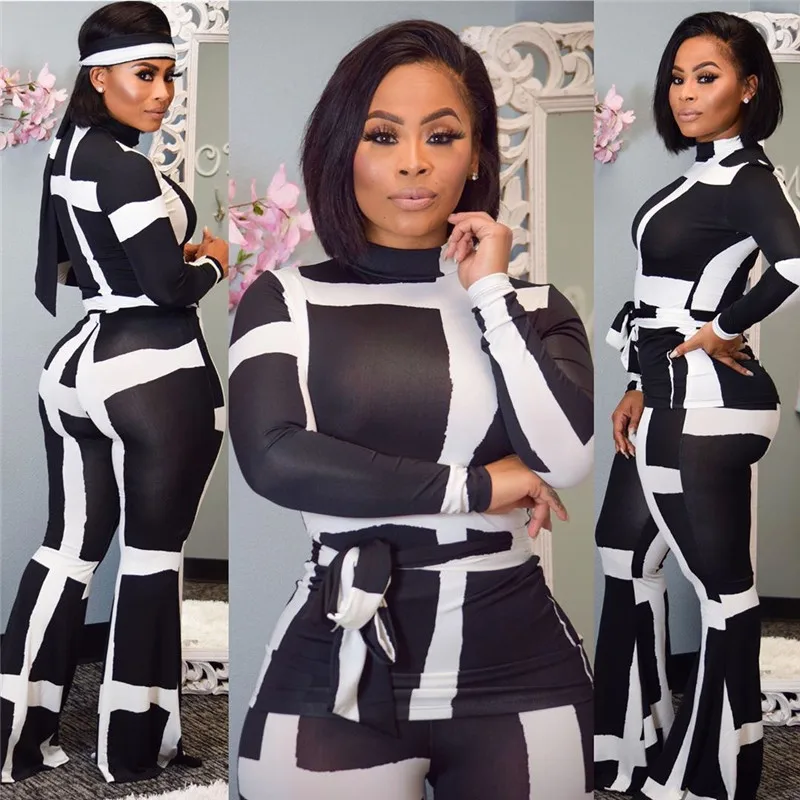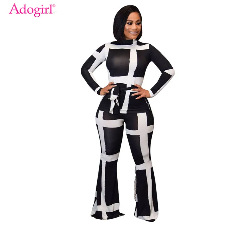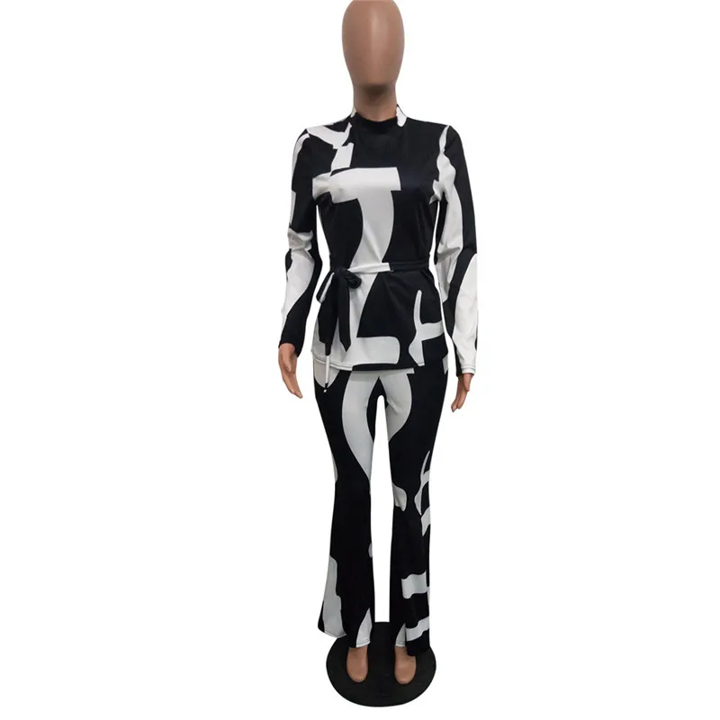 Adogirl комплект из двух предметов с модным принтом и повязкой на голову с поясом, футболка с длинным рукавом, топ с расклешенными штанами, женский модный повседневный костюм