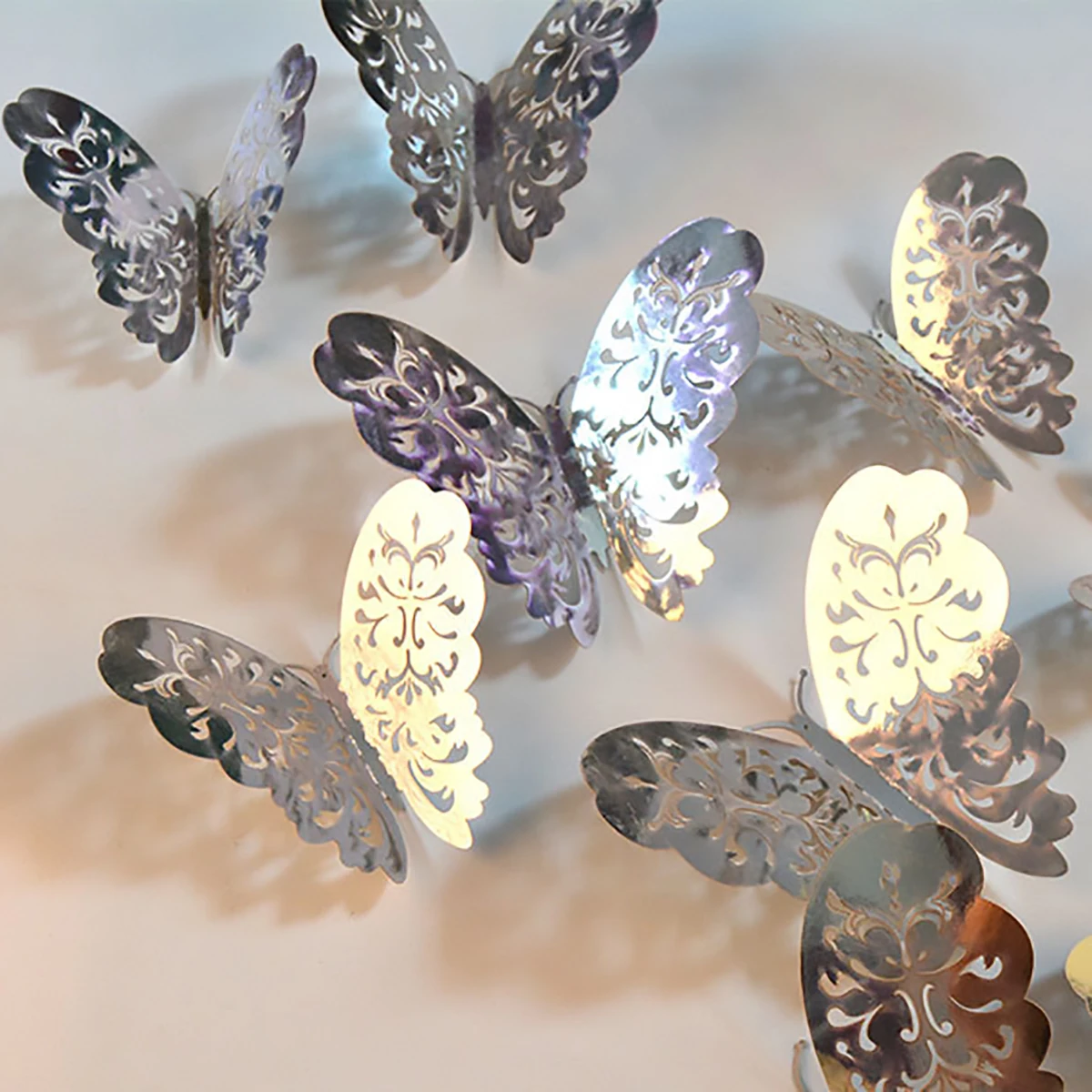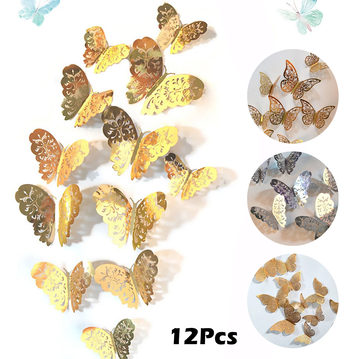 12 шт., настенные 3d-украшения в виде бабочки, милый полый стикер на стену с бабочками, художественные наклейки для домашнего декора, настенные художественные украшения для комнаты