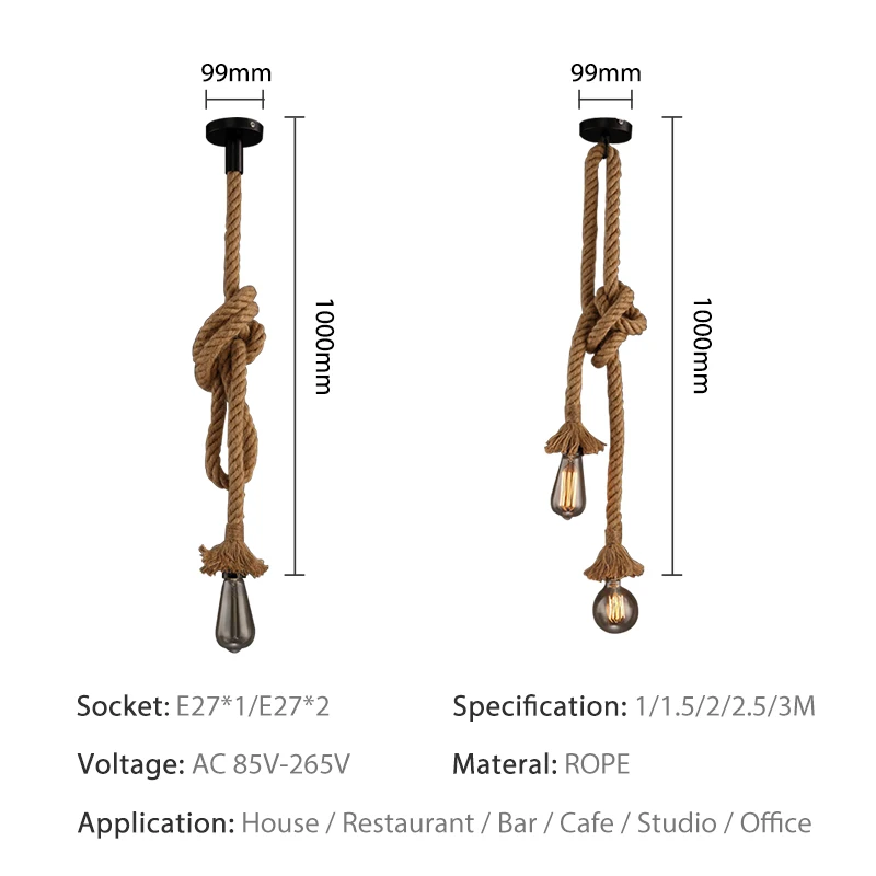 Винтажная подвессветильник веревка E27, 1 м, 1,5 м, 2 м, 2,5 м, 3 м, 85-265 в