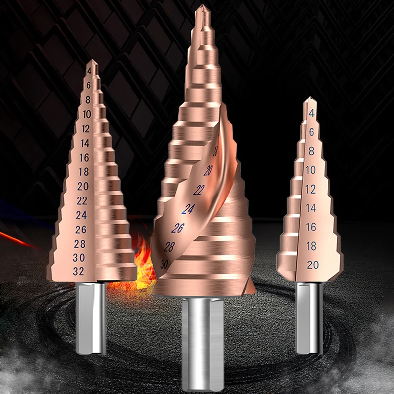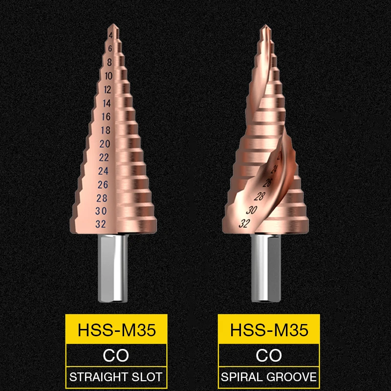 Кобальтовое ступенчатое сверло M35 4-124-204-32 мм, высокоскоростные стальные сверла, спиральный паз, треугольный хвостовик для нержавеющей стали