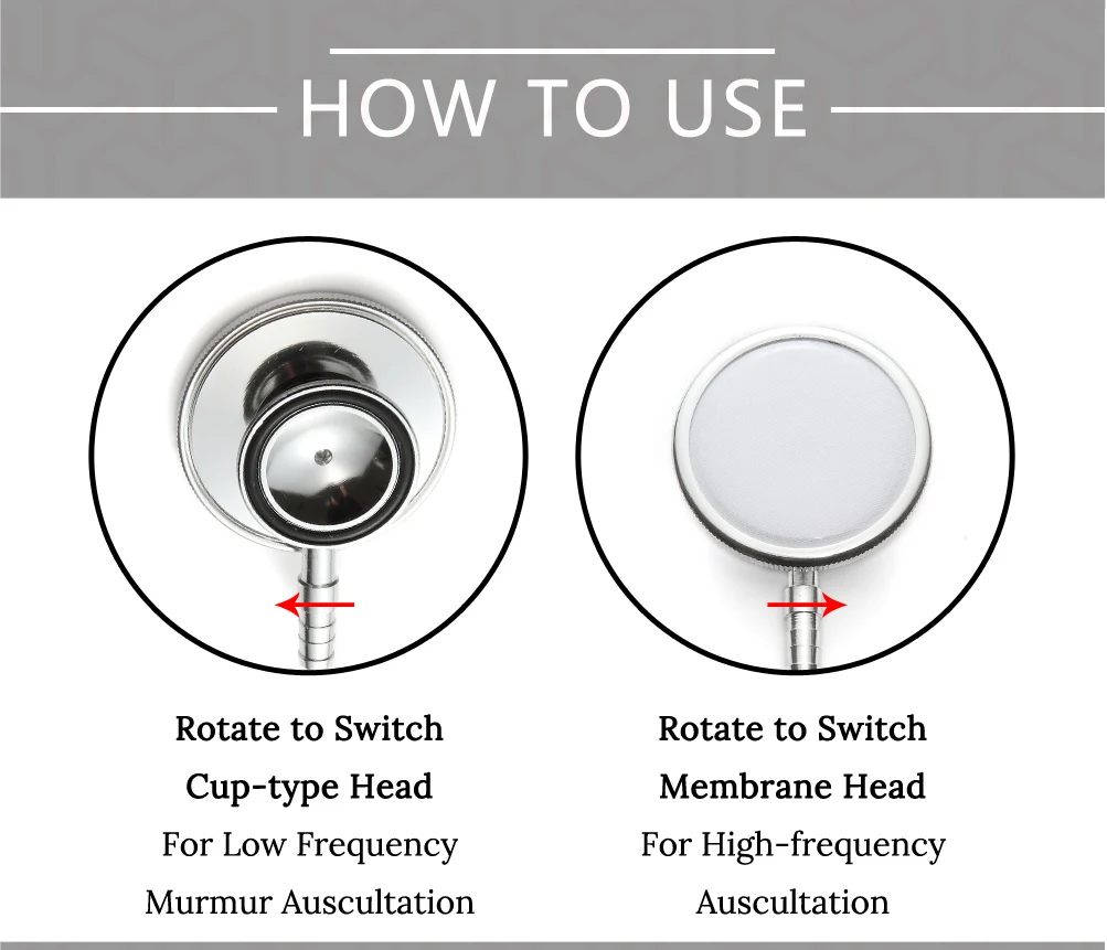 Если вам не удобно,Или акустическая производительность отсутствует, регулируйте напряжение гарнитуры. Все наши стетоскопы имеют регулируемые наушники. Аккуратно сдавливайте наушники вместе, чтобы увеличить напряжение гарнитуры; Вытяните их, чтобы уменьшить напряжение.