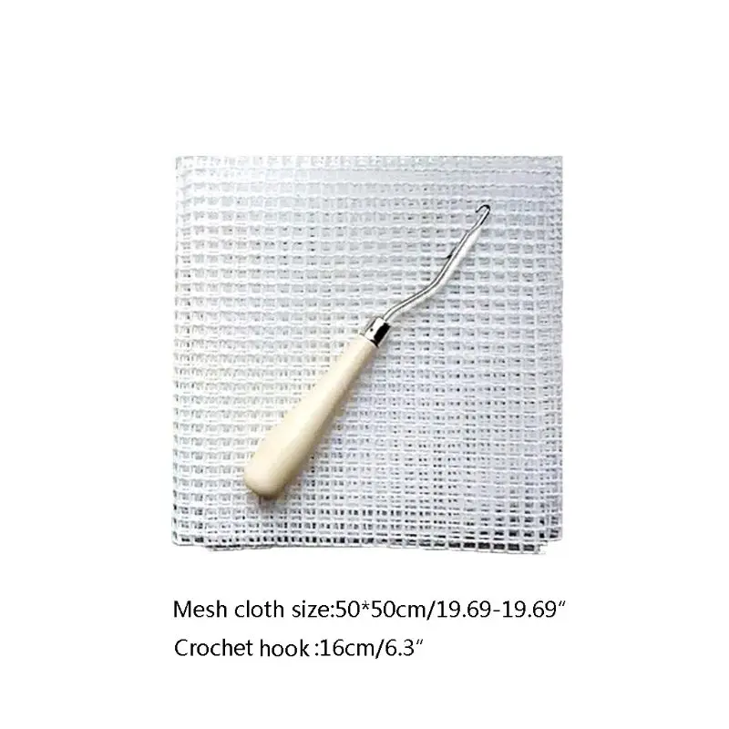 100% новый и высокое качествоХарактеристика:Защелкивающийся крючок: деревянная ручка и металлический крючок; Изогнутый крючок предназначен для большинства видов использования.Сетчатая Ткань:Подходит для изготовления ковров, создания кофейных подстаканников, защелка для самостоятельной сборки крючков, подушек и других проектов.Его можно разрезать в соответствии с вашими потребностями в процессе самостоятельной сборки.Сшить узоры или украсить сетчатый холст кружевом, бисером, лентами или нитями.Можно создать красивые плетеные ковры, это прекрасный подарок для вашей семьи и ваших друзей.Примечание: только шерстяная сетка с крючками, ковер, гобелен и другие аксессуары для шитья на фото не включены!